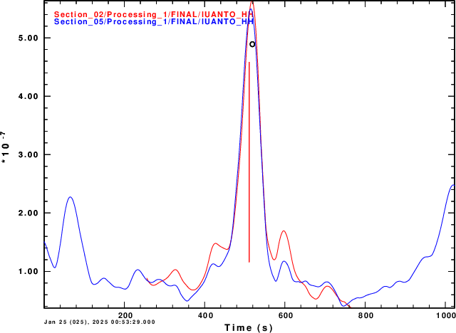 Here we see that the wider window does sharpen the stack, but also adds some large side lobes. To be fair, the Section_02 trace consisted of 512 seconds (512 points) while the Section_05 was 1024 sec long (1024 samples).