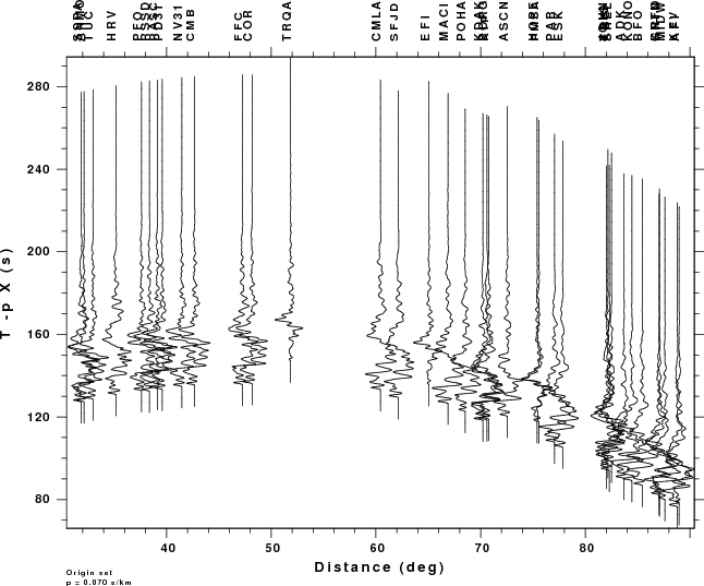 The following two plots show the stations and the record section.